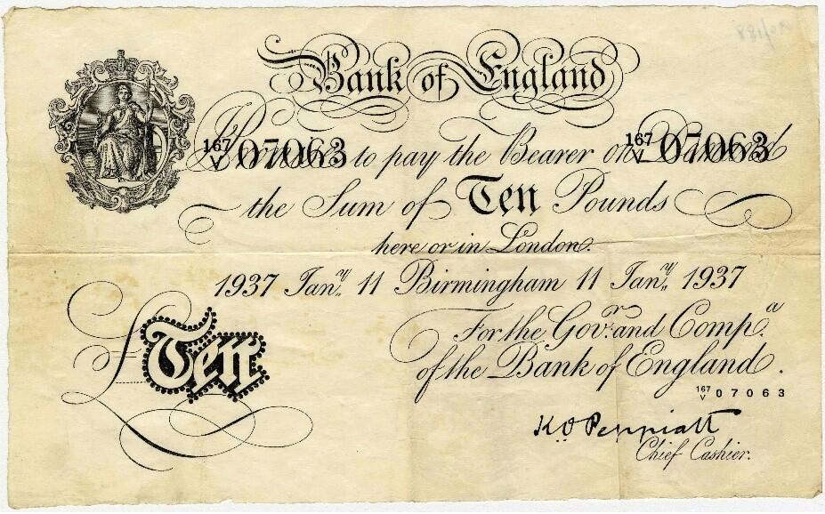 Møntkompagniet kan nu tilbyde noget helt specielt. For første gang kan vi tilbyde dig en ægte forfalsket 10-pund seddel, printet under Operation Bernhard! Operation Bernhard var en plan nazi-tyskerne lavede som forsøg på at underminere de britiske pund under Anden Verdenskrig.